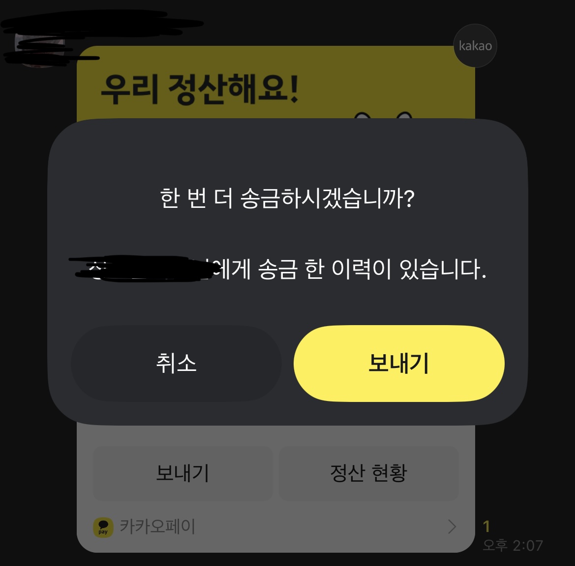 ㅇㅇ님에게 송금한 이력이 있습니다.”