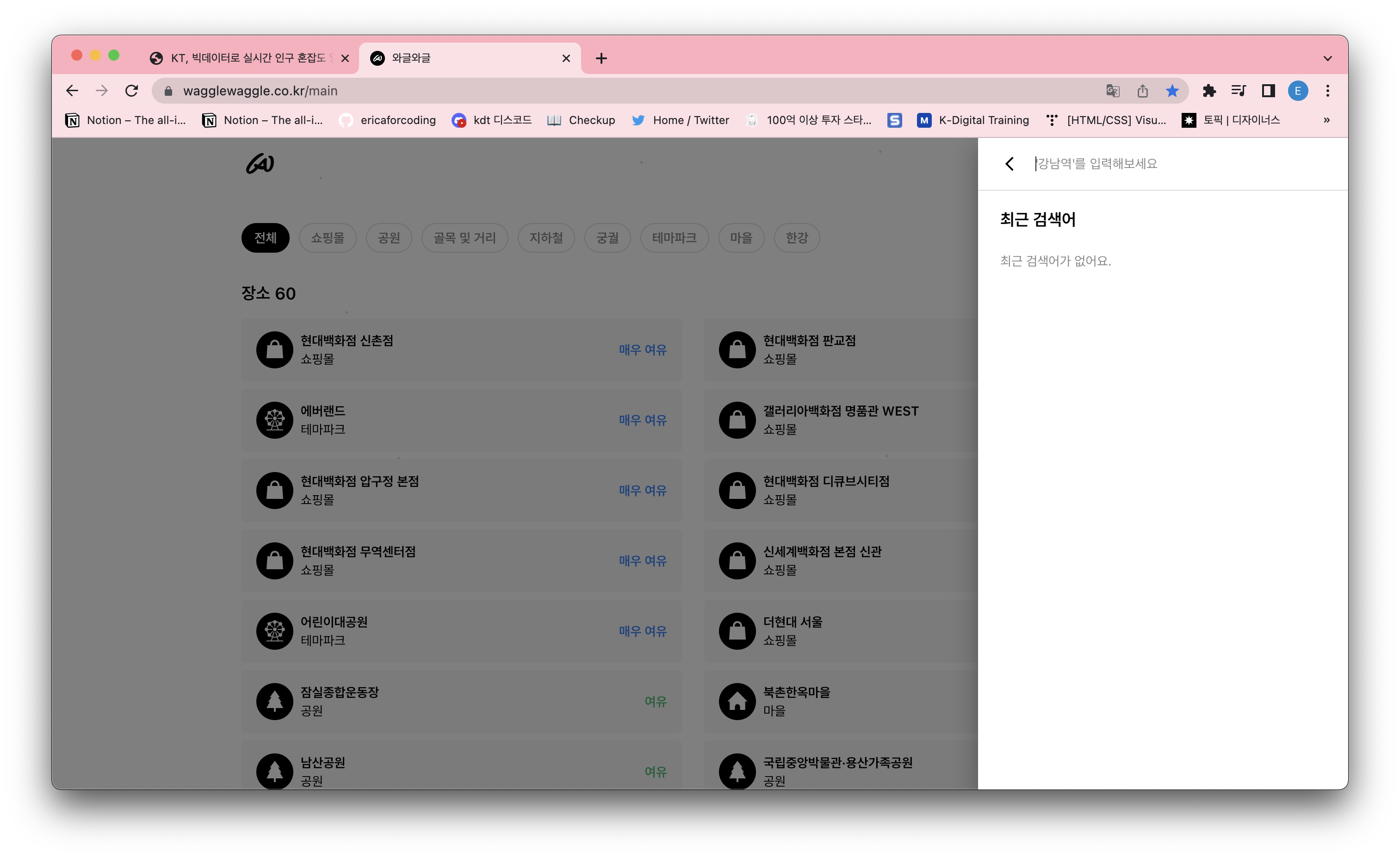- 플레이스홀더에 " '강남역'을 입력해보세요" 안내 문구 출력