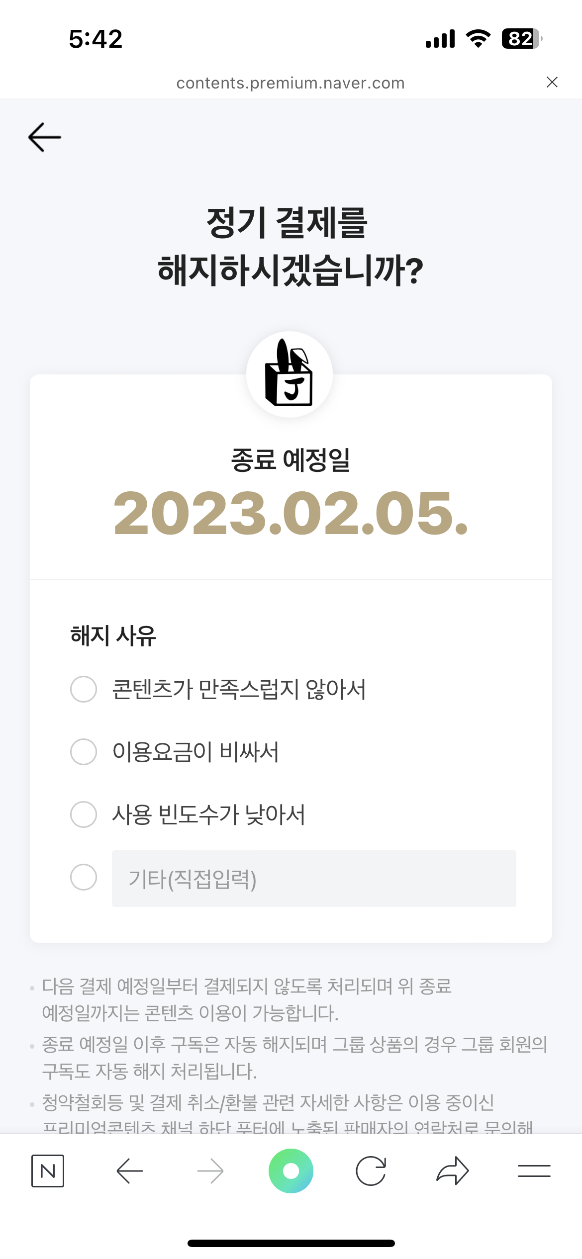 네이버 프리미엄 콘텐츠 구독해제 프로세스