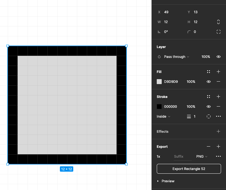 - 좌, 우 모두 6x6 사각형, stroke 1