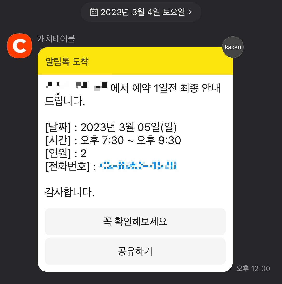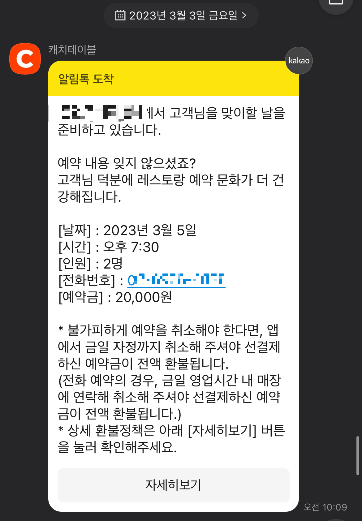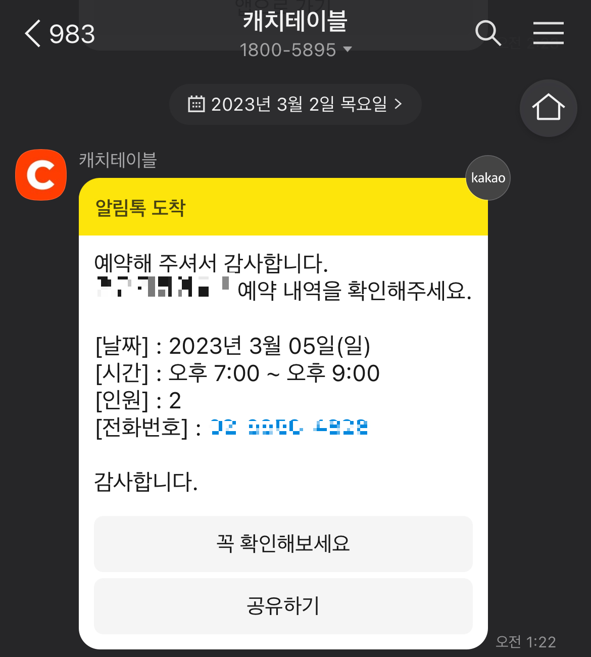 | 캐치 테이블 예약 사고 신고하기 (0) | 2023.03.12 |