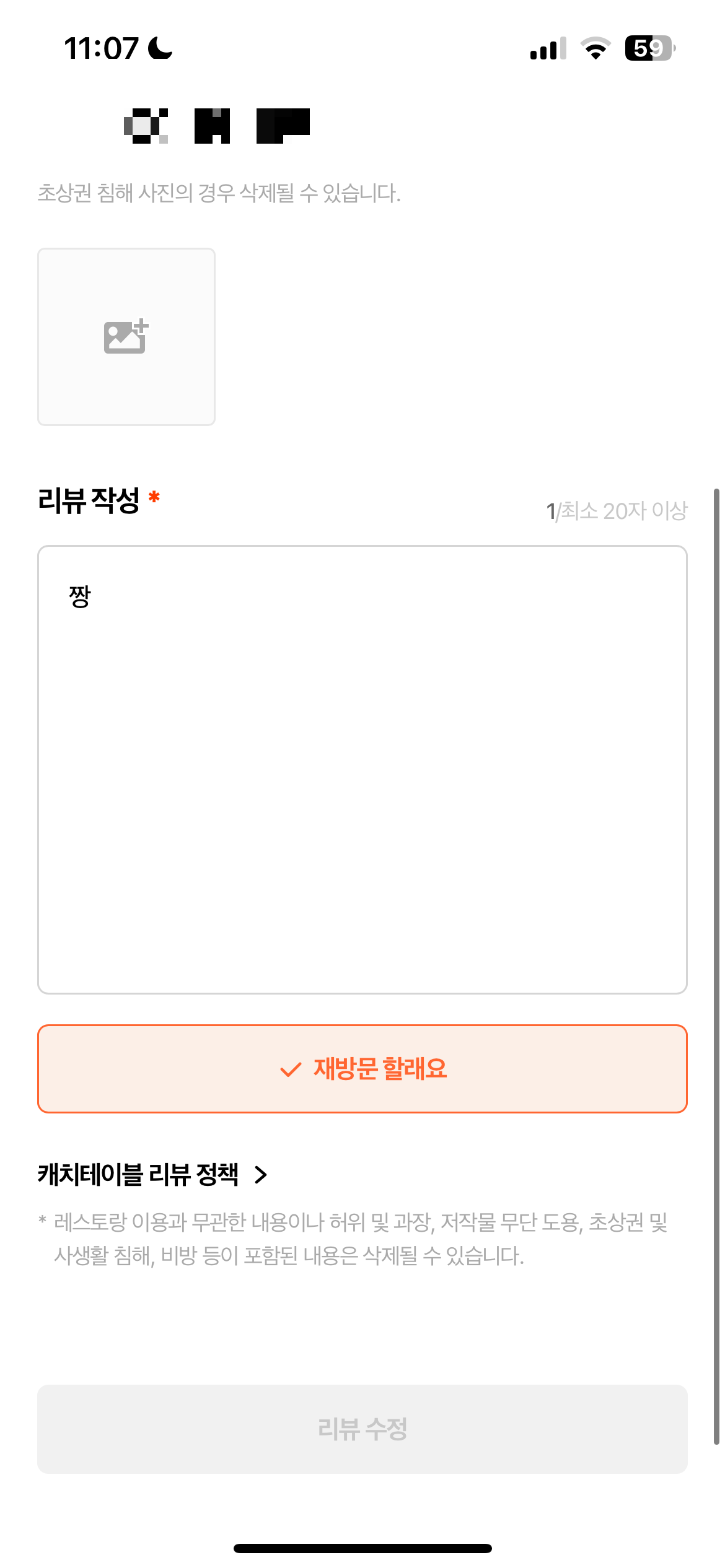 캐치 테이블 리뷰 작성하기