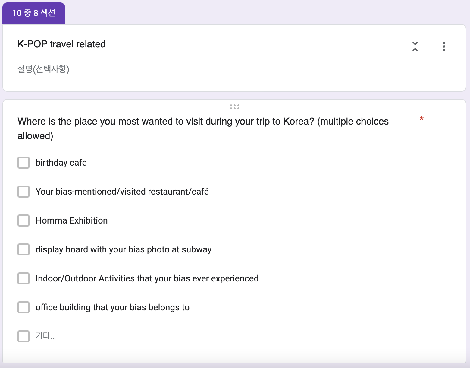 - 영어/일본어 두 가지 서베이를 제작하여 배포하였음