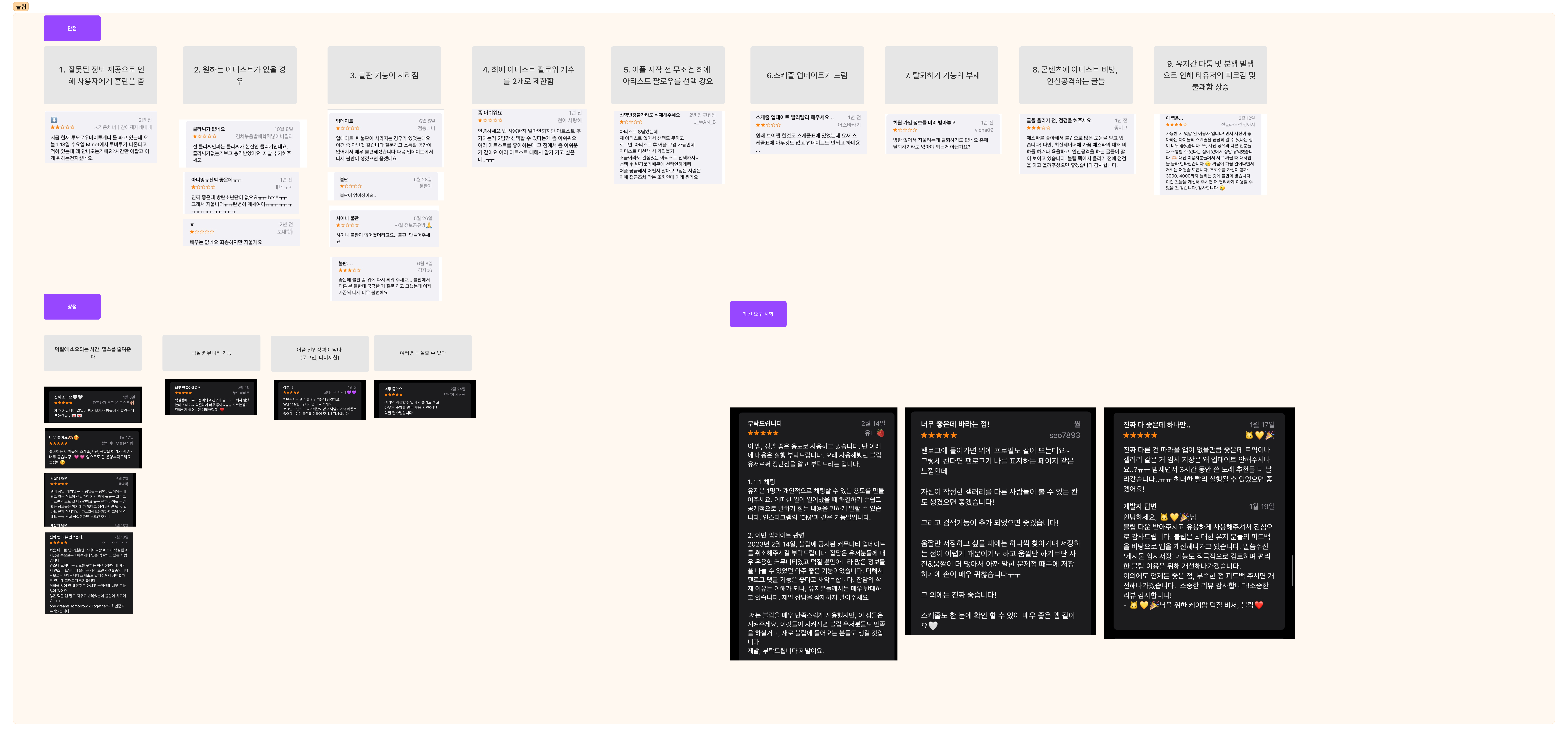 - 타사 어플 voc 분석을 통해 타사 어플이 해결하지 못하는 유저들의 니즈/페인포인트 발굴