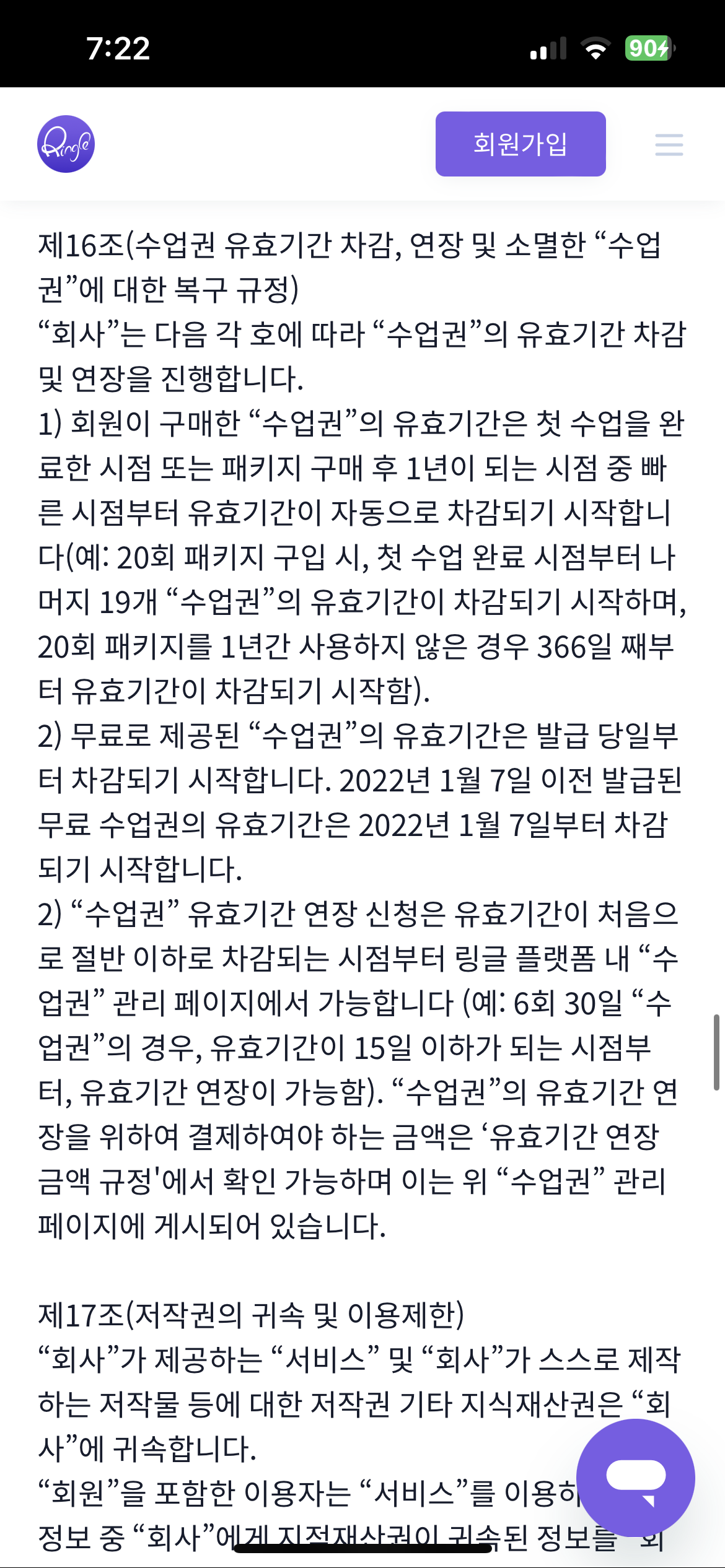 -"수업권"의 유효기간이 만료되는 경우 "수업권"이 자동 소멸됩니다. 그와 같이 소멸된 "수업권"에 대해서는 "회사"가 환불을 제공하지 않습니다.
