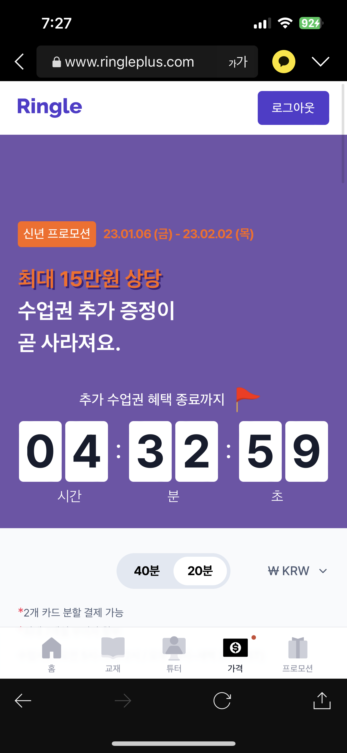 -"수업권"을 포함하여 "서비스" 이용 요금은 "회사"가 미리 정한 요금체계에 의해 링글 플랫폼에 사전 공지한 가격을 기준으로 적용됩니다.