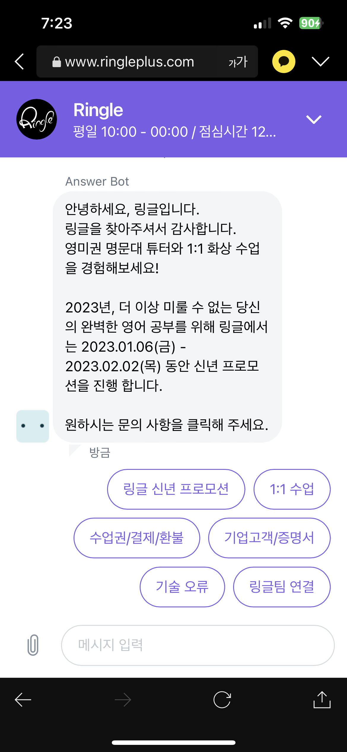 -위에 규정되지 않은 수업 및 예약수업의 수강요령은 링글 플랫폼의 별도 안내 페이지에 따릅니다.