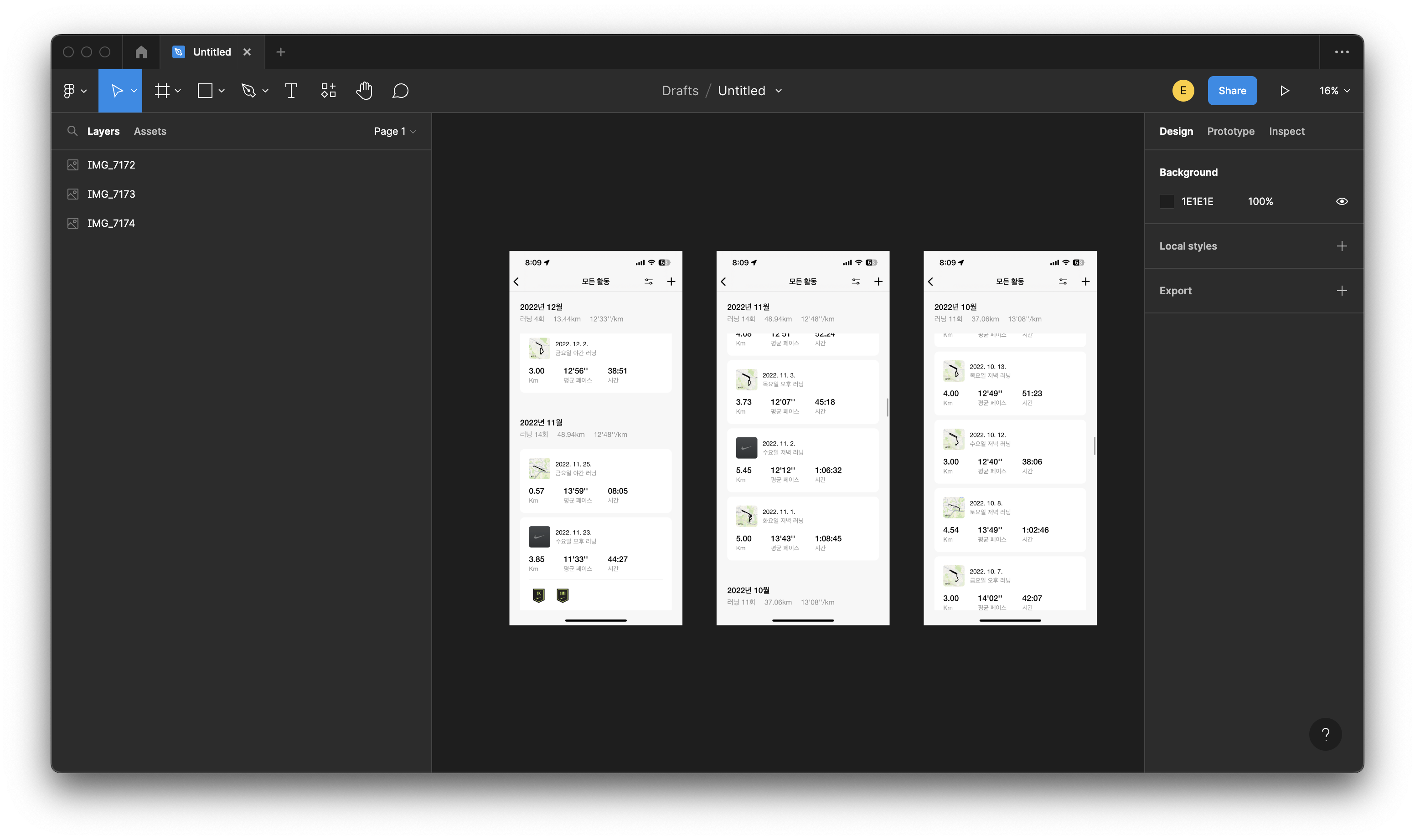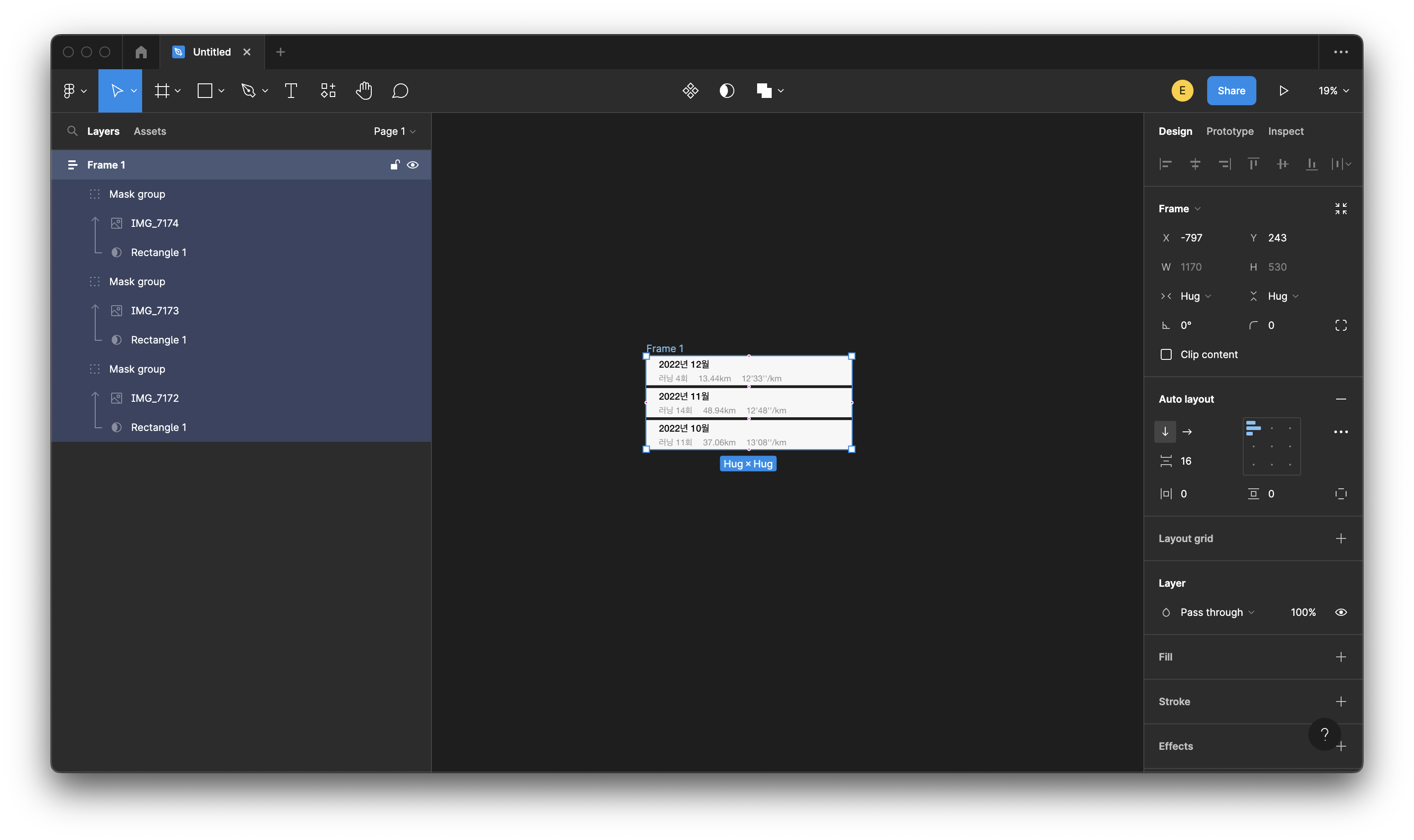 일단 이렇게 피그마에 내가 자르고 싶은 사진들을 나열해준다.