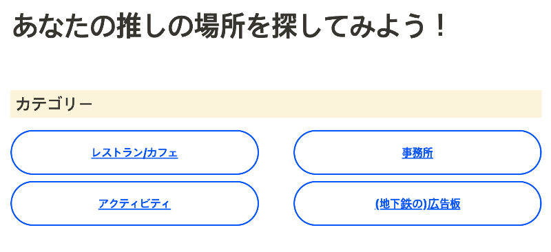 - あなたの推しの場所を探してみよう!페이지에서 식당 버튼, 사옥 버튼, 전광판 버튼, 액티비티 버튼의 클릭수로 추정한다.