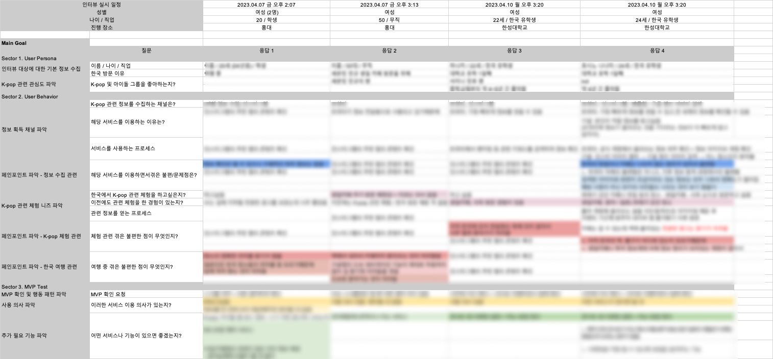 우리 서비스의 메인 타깃 유저가 될 일본인 관광객들의 Real Voice를 확인하여 정확한 문제점을 파악하고자 한국을 여행 중인 K-pop 팬 일본인, 유학 생활을 하고 있는 일본인을 대상으로 인터뷰를 진행하였다.