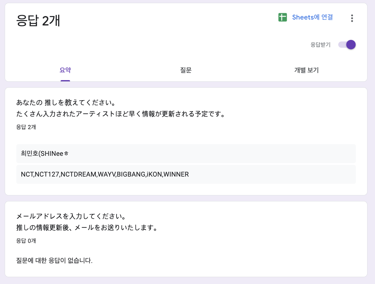 - 이메일까지 입력된 구글폼의 갯수는 0개를 기록하였다.