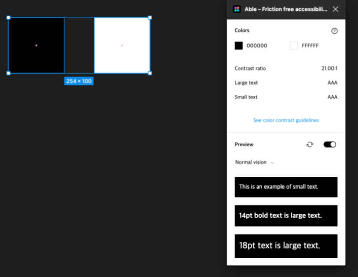 검정과 하얀색의 경우 contrast ratio는 21:1인 것을 확인할 수 있다.