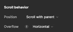 scroll behavior에서 Overflow- Horizontal이 되어야 하는데, 느낌표와 함께 가로 스크롤 기능이 구현되지가 않았다.