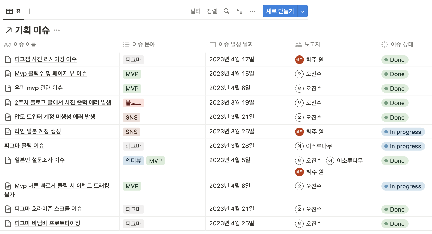 - 기획: Notion, Google Sheet