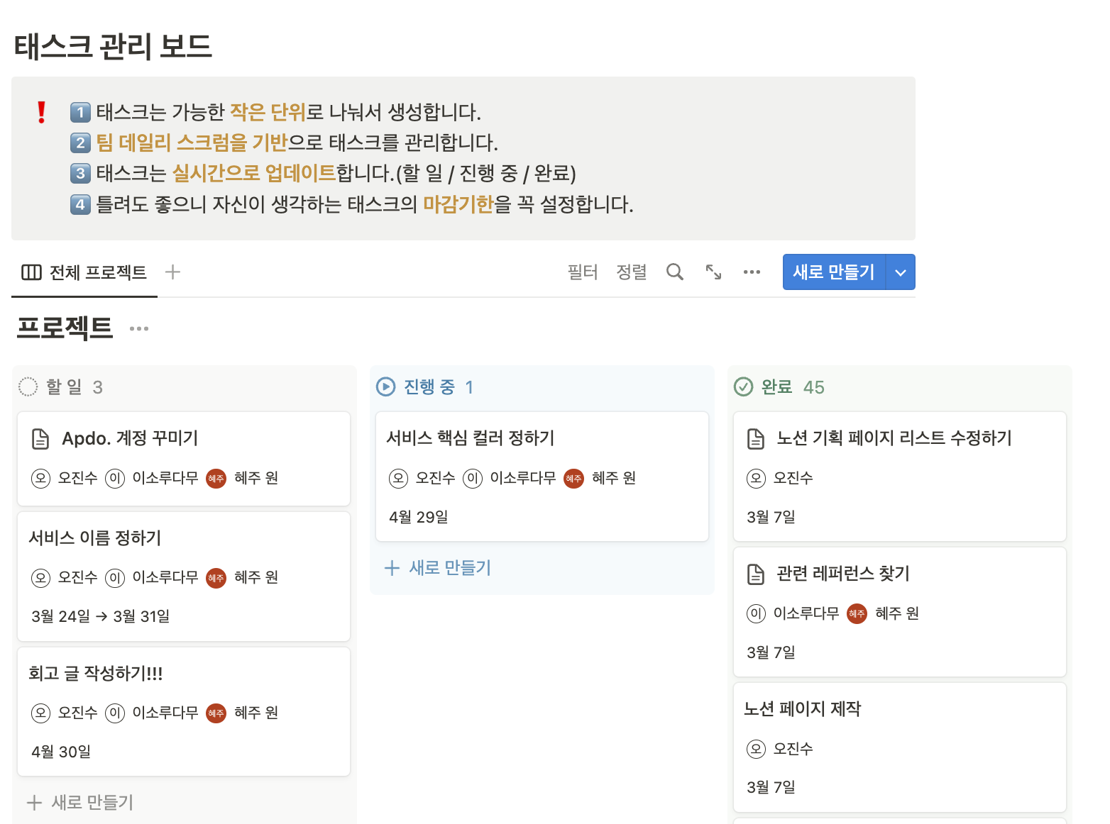 Notion으로 프로젝트 일정관리 및 문서화 진행