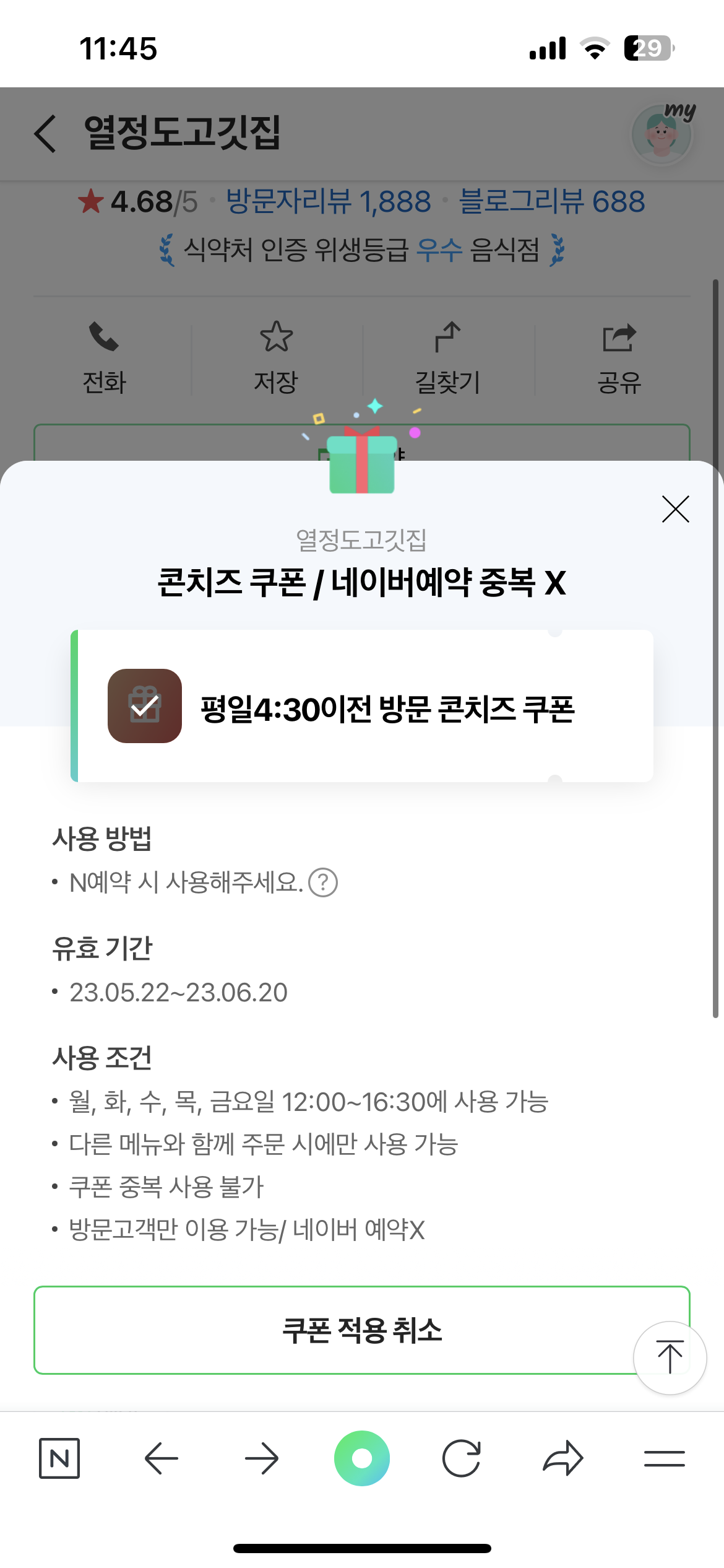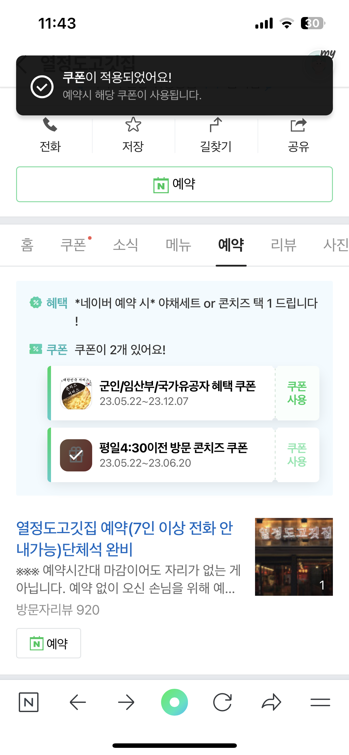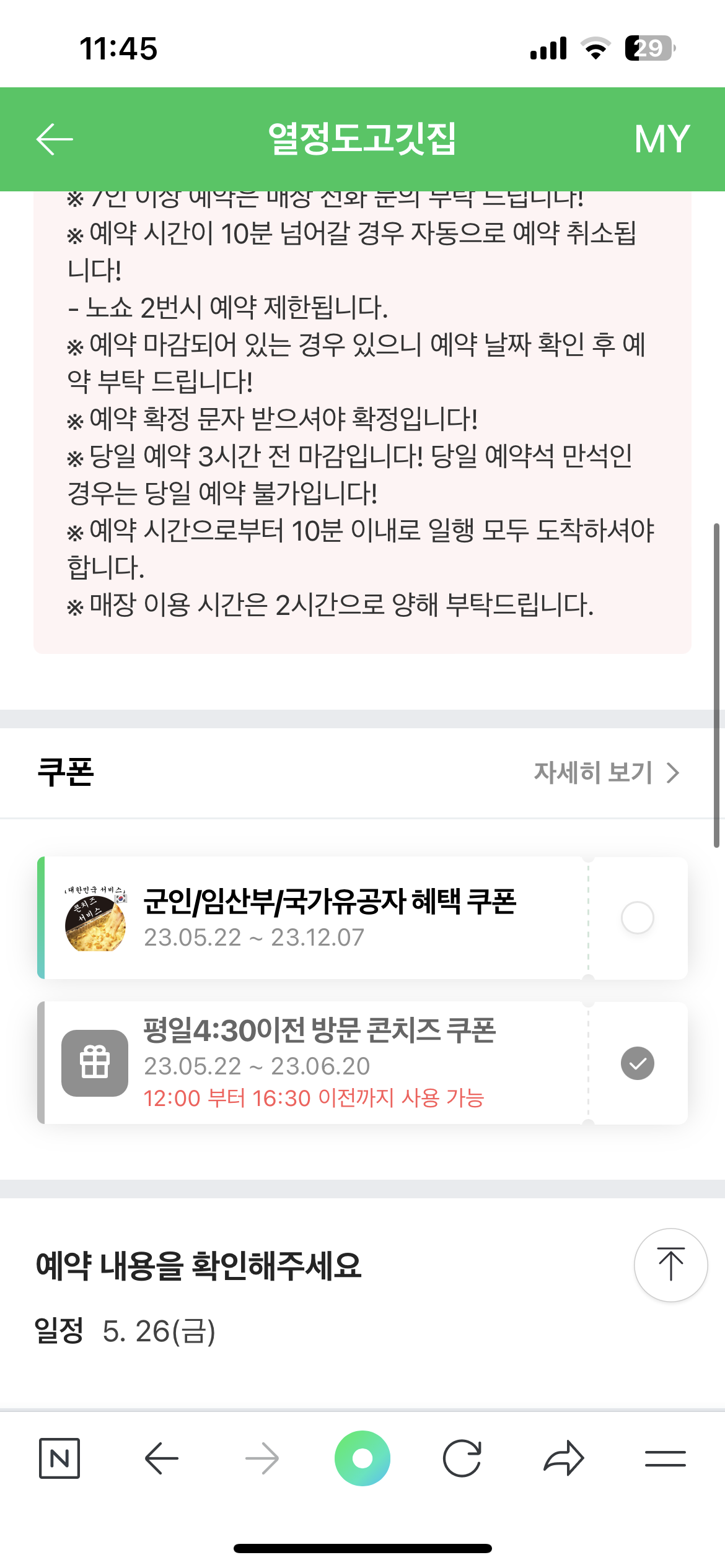 쿠폰 사용 불가 시 화면