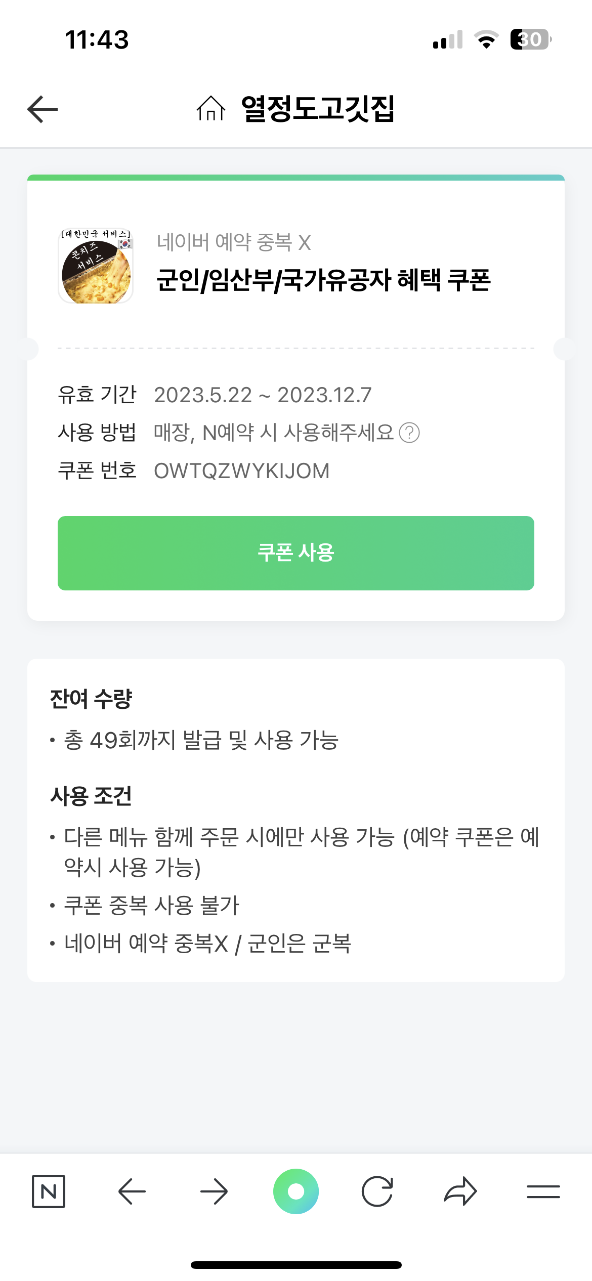 쿠폰 사용 불가 시 화면