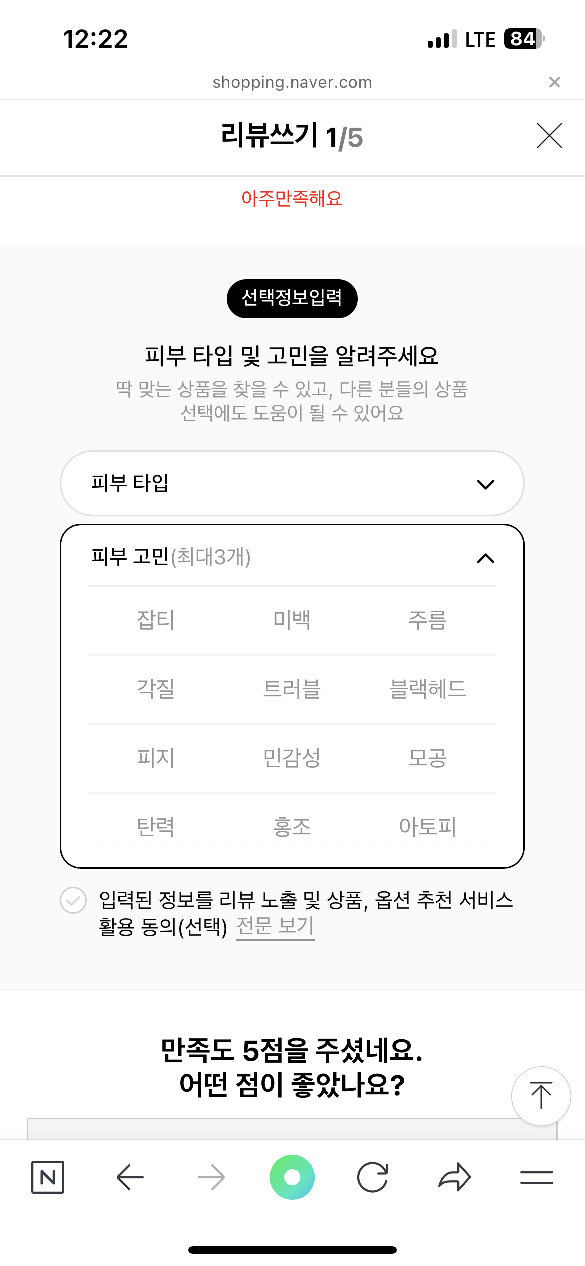 - 네이버 쇼핑에서 화장품 카테고리 구매 후 리뷰 작성 시 "선택정보입력" 선택 가능