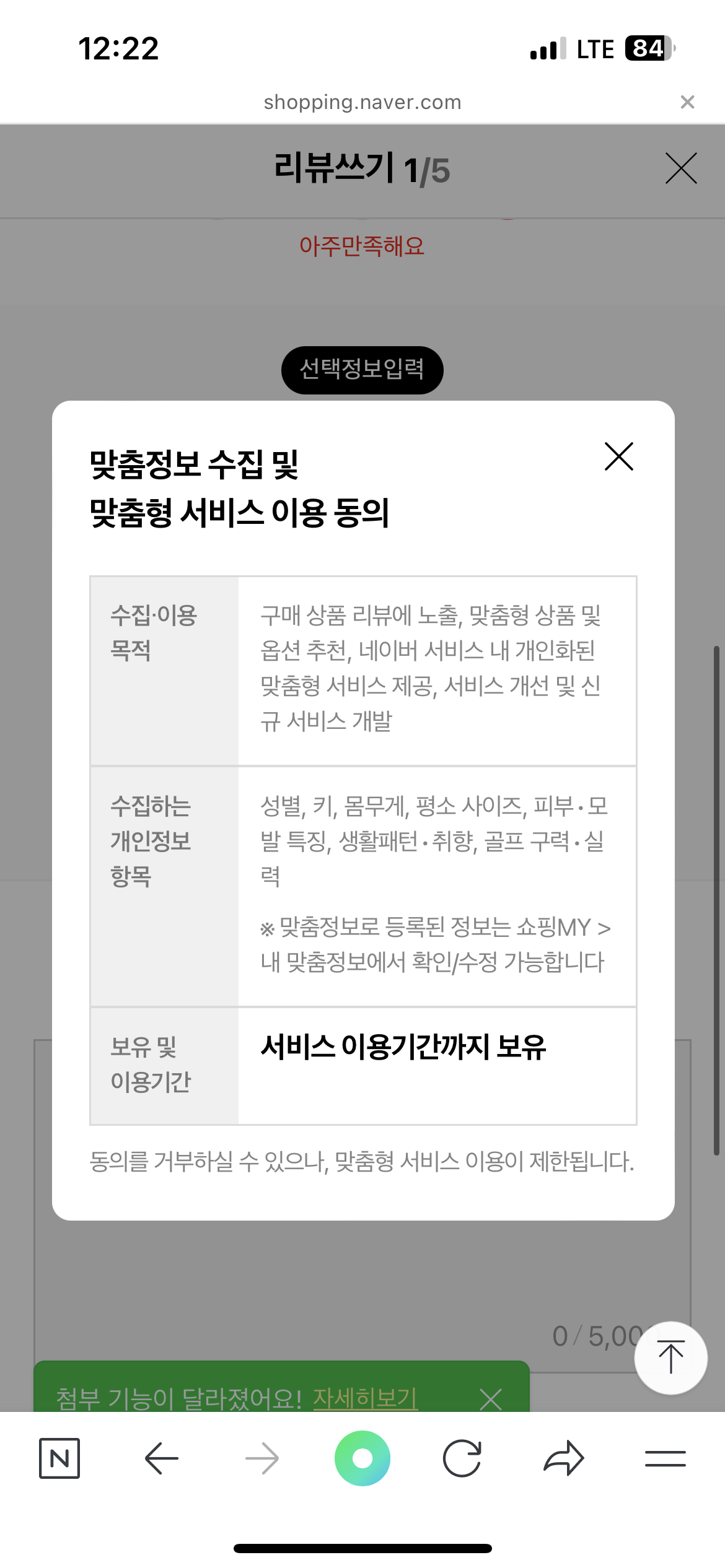 - 수집 이용 목적: 구매 상품 리뷰에 노출, 맞춤형 상품 및 옵션 추천, 네이버 서비스 내 개인화된 맞춤형 서비스 제공, 서비스 개선 및 신규 서비스 개발