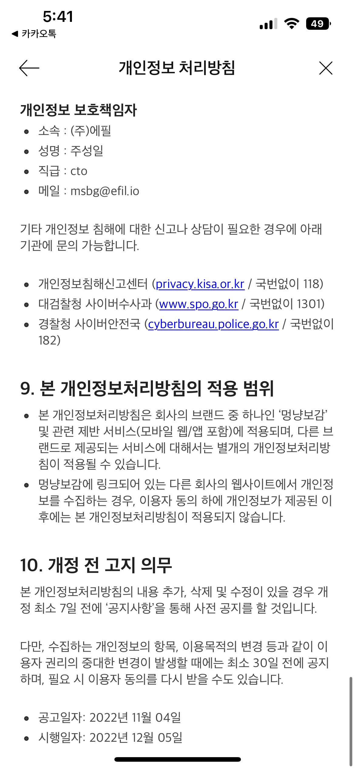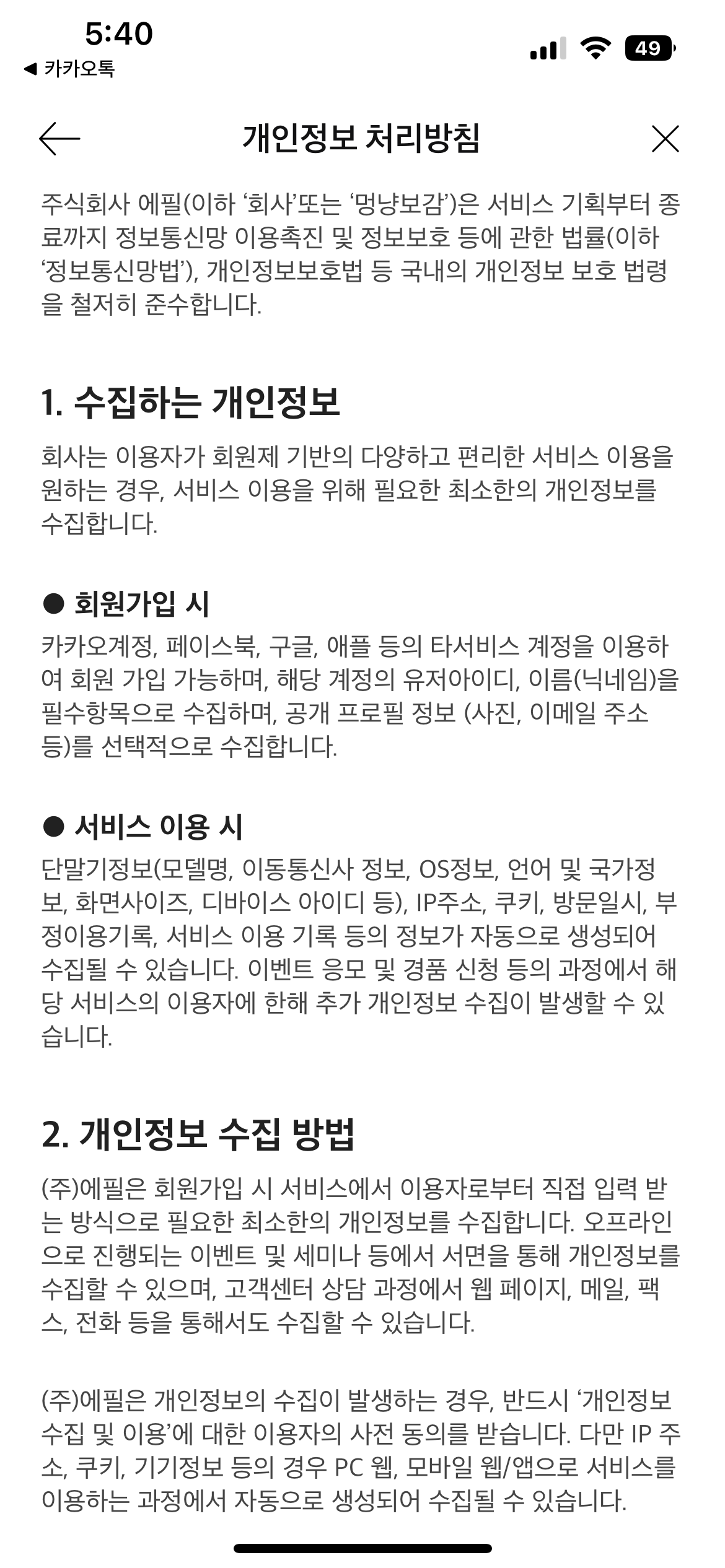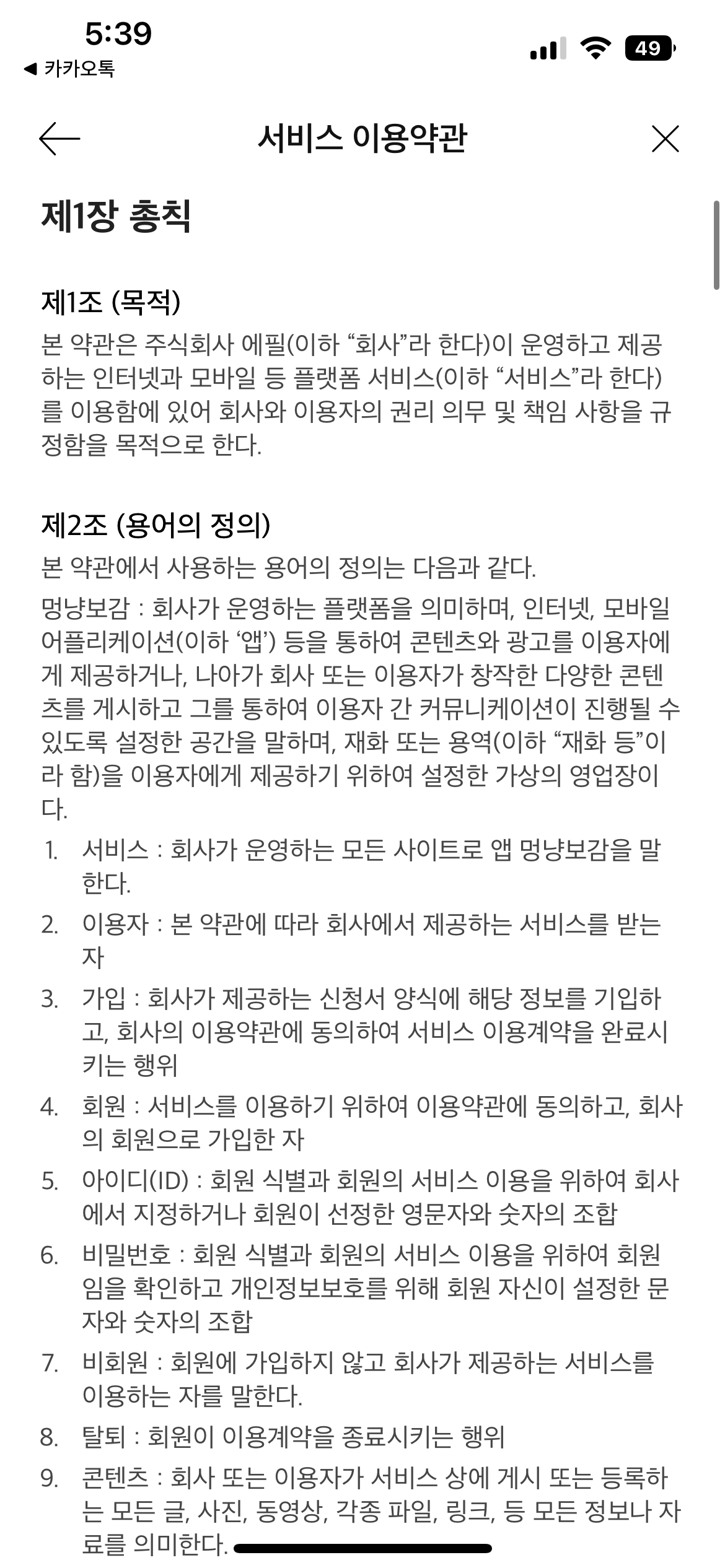 30조 4항: 회원은 본인이 멍냥보감 내에 게시한 콘텐츠를 회사가 국내 또는 국외에서 다음 각 호의 목적에 따라 필요한 범위 내에서 해당 콘텐츠를 편집 및 사용하는 것을 허락한다