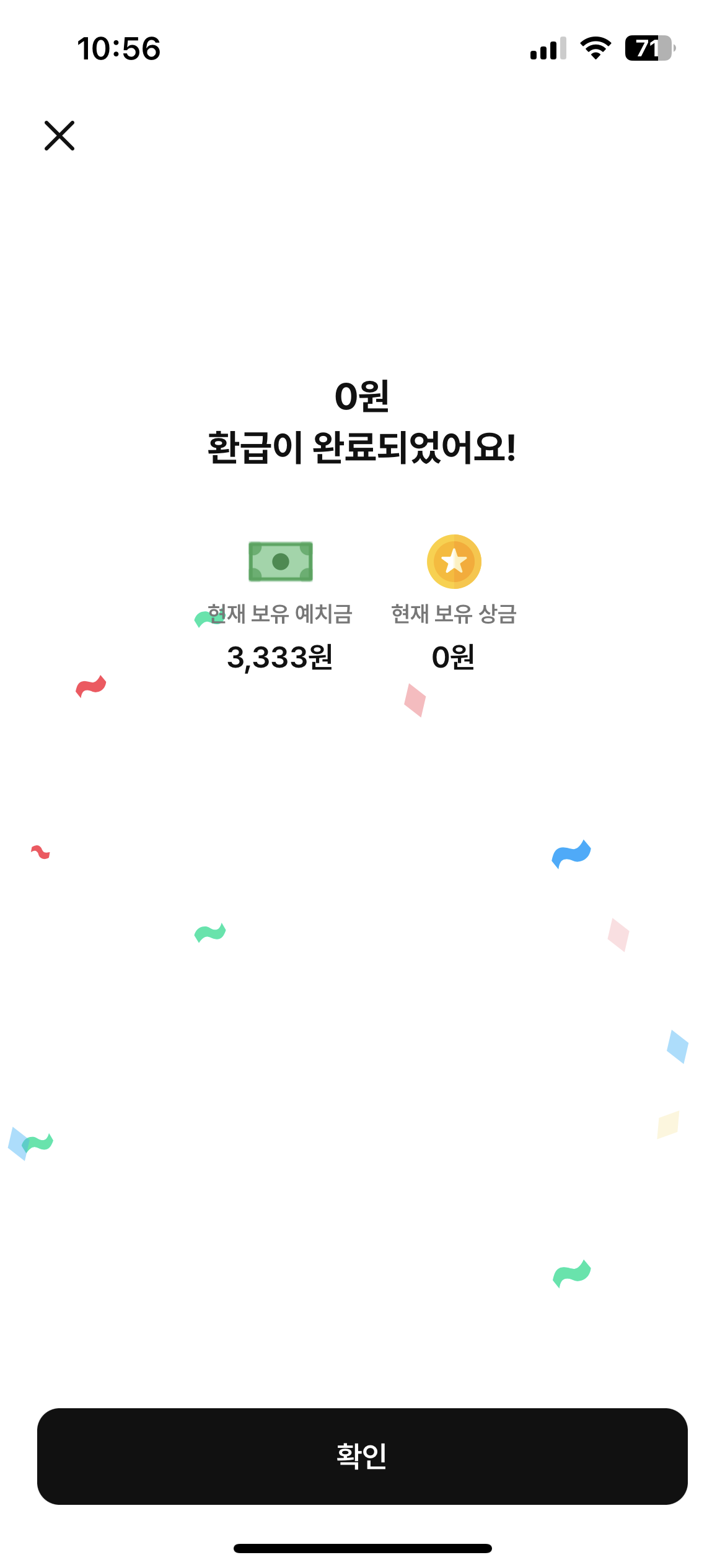 - 리뷰 작성 완료 시 환급금과 환급이 완료되었어요! 문구 출력